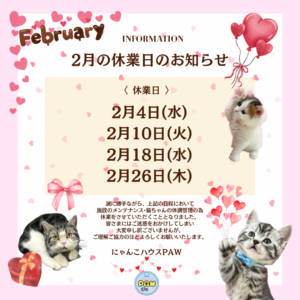 2月の休業日のお知らせ📣