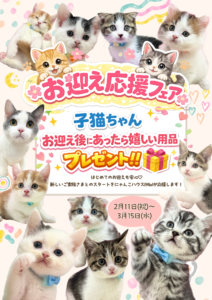 2026/02/14 子猫ちゃんをお迎えの方に爪切りなどの“あったら嬉しい用品”をプレゼント🎁✨ はじめてでも安心💗新しい家族とのスタートをにゃんこハウスPAWが全力応援します🐱💕2/11〜3/15まで!運命の出会い、見つけにきませんか?🐾💫
