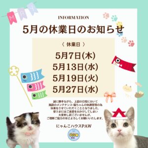 5月の休業日のお知らせ📣